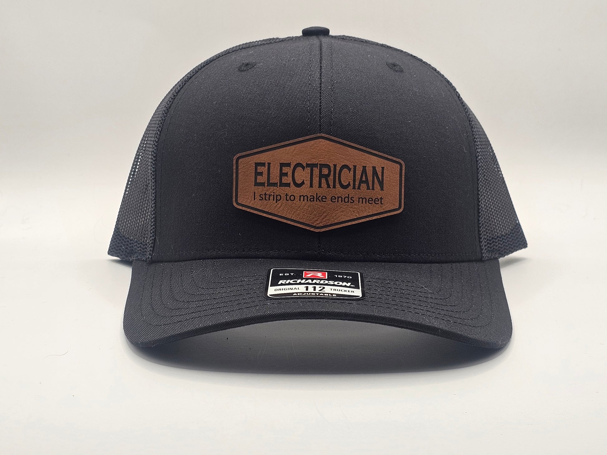Shown in Black/Black with Rawhide Leatherette. All hats are made to order, so please bear with us while we craft your item! Our supply of hats are constantly being re-stocked so please allow a day or two in case your color isn't currently available. All patches can be made in any of the leatherette colors shown.